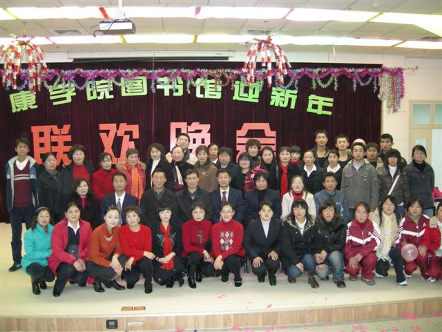 12月28日,学院图书馆举行了一场迎新年联欢晚会。晚会以“团结向上、建设和谐校园、丰富职工文化生活”为主题,展现了三校整合以来图书馆员工新的风采和朝气蓬勃的精神面貌。 图书馆负责人何道利致辞欢迎学院领导和各位到场的学生及家属。主管院领导,学院党委副书记、纪委书记闵小平到场讲话并参与了联欢活动。闵小平总结并充分肯定了图书馆在三校整合、巩固升本建院成果、建设合格本科院校工作中所做出的成绩,同时也提出了如何根据本科教育教学需要分类、分层次做好服务工作的殷切希望,讲话给予了全体图书馆人以极大地激励和鼓舞。 晚会以一首全馆人员参加的大合唱《我们是光荣的图书馆员》开场,歌唱了图书馆人“读者第一,服务育人、传播知识”的理念,表达了图书馆人清新平凡、甘作人梯的品德。 晚会同时邀请了本届“学管会”委员和部分职工家属,并一起参加了互动演出。 通过本次活动,活跃了职工的业余文化生活,增进了相互间的了解,加强了团结和友谊,为和谐校园建设增添了新的活力。